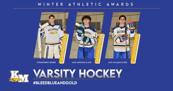 The Varsity Hockey Team finished the season in 5th place with a record of 6 wins 6 losses and 2 ties. This year the boys improved upon their record from last year, and moved up another spot up in the rankings. Unfortunately, we fell just short of a playoff spot. This was our third year playing in the highly competitive AA division and every year we have improved upon the year before. Throughout the season the team always played hard and never gave up, which was evident in a mid-season 6-6 game we ended up tying vs Xavier. The third period started with a 6-3 deficit, the boys knew what the needed to do and tilted the ice in our favor scoring three goals to tie the game. Unfortunately, there is no overtime in this league. The team continued there season with a memorable win on Senior night with a 6-4 win over Arch Bishop Stepinac. As the season was winding down the boys finished strong and won their last 3 games hoping to earn that playoff spot. I’m looking forward to next season where we have a strong and talented Junior class of hockey players, who will continue to improve our program here at Kellenberg. In closing, I’d like to wish the best in life for the Seniors moving on. Never forget the lessons you learned playing hockey. You can not fake being hockey player- it takes time, effort and perseverance to learn to skate, stick handle, shoot, and pass. It takes awareness, understanding, and peripheral vision to play as a team. And it takes grit and toughness to check and be checked and continue to play the game. Lastly, pray before every challenge and test life puts before you. In the locker room we pray as a team, the Hail Mary, before every game and ask Mary for her blessing before we take the ice. To all the seniors here tonight may Mary Bless you all to be victorious in the game of life.