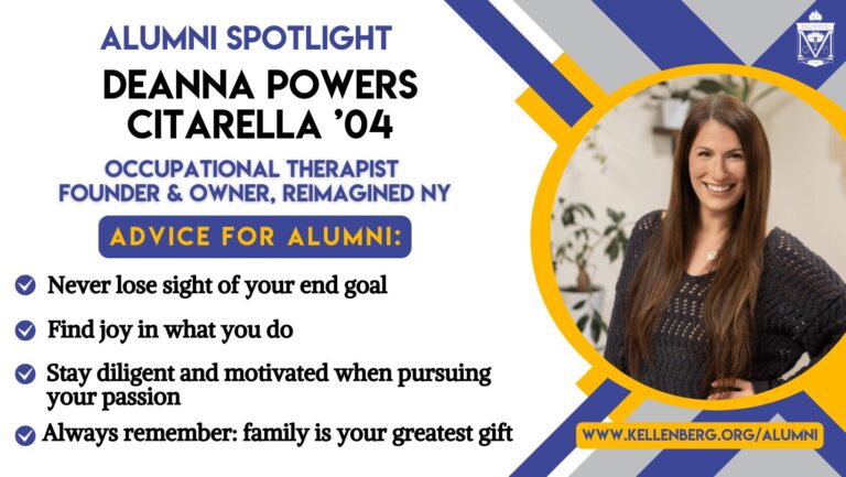 My time at Kellenberg profoundly shaped me into the professional, wife, and mother I am today. As an occupational therapist, Kellenberg provided me with the educational foundation to succeed in a competitive program. As a business owner, it gave me the confidence and skills to become an entrepreneur and build something I am passionate about. As a wife and mother, Kellenberg taught me that family is my greatest gift. The school consistently emphasized the importance of family and faith—values that continue to play a central role in my life today.