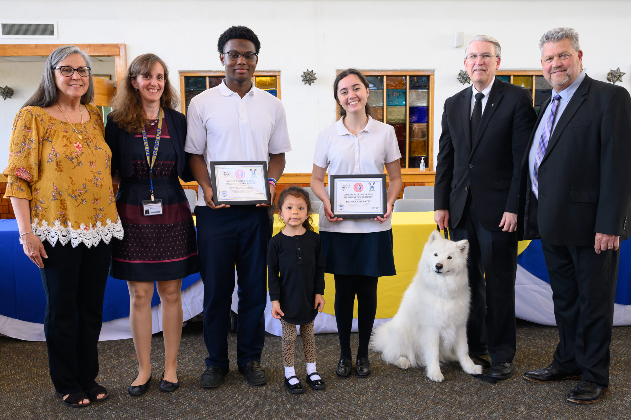 On May 12, seniors Brooke Cassatto ’22 and Stephan Loiseau ’22 received the 2022 Joe Ferriso Memorial Scholarship, given to graduating seniors of Joe Ferriso’s alma mater, Kellenberg Memorial High School. The award was presented by the family of Joe Ferriso who passed away after an auto accident in 2015. A scholarship in his name was established to award graduates of Kellenberg Memorial High School and of Copiague High School, his hometown.