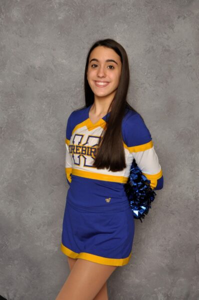 This season’s Most Valuable Player goes to a cheerleader who has been a true asset to our team over the past two years. Mia Quinones is an all-around cheerleader with strong stunting skills, impressive jumps, and beautiful tumbling. She has proven to be one of the most reliable flyers on the team, and she pushes herself and her teammates beyond what is asked of them each and every practice. Mia’s effort, talent, positivity, and determination are unmatched. She is a natural leader and an absolute pleasure to coach. Mia excels in all aspects of cheerleading, and we can’t wait to watch her continue to grow as a cheerleader. This season’s Most Valuable Player is Mia Quinones.