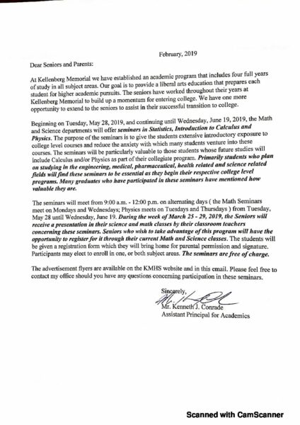 Senior Sci _ Math Seminars Parent Letter 2019