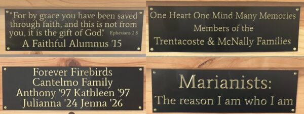 Each bench is handcrafted by Kellenberg Memorial using the redwood trees that were removed from the construction site. This process ensures that these beautiful trees, which were originally planted by Kellenberg Memorial’s Founding President, Fr. Philip K. Eichner, S.M. (†), continue to be part of our campus.