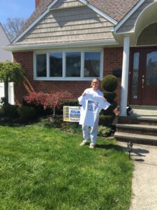 NYSSCOGS and Mudville Softball Presidents, Kathleen and Perry L. Novak, showed their appreciation for the KMHS seniors by sending them each the traditional tournament t-shirt given at the annual event. On Saturday, April 25, Coach Ken Conrade visited Daisha Howard, Samantha O’Donnell, Julia Tarantino, Katie Hand, and Julia Piotrowski to present their shirts, talk with the athletes, and spend a moment visiting with each family from a safe distance.